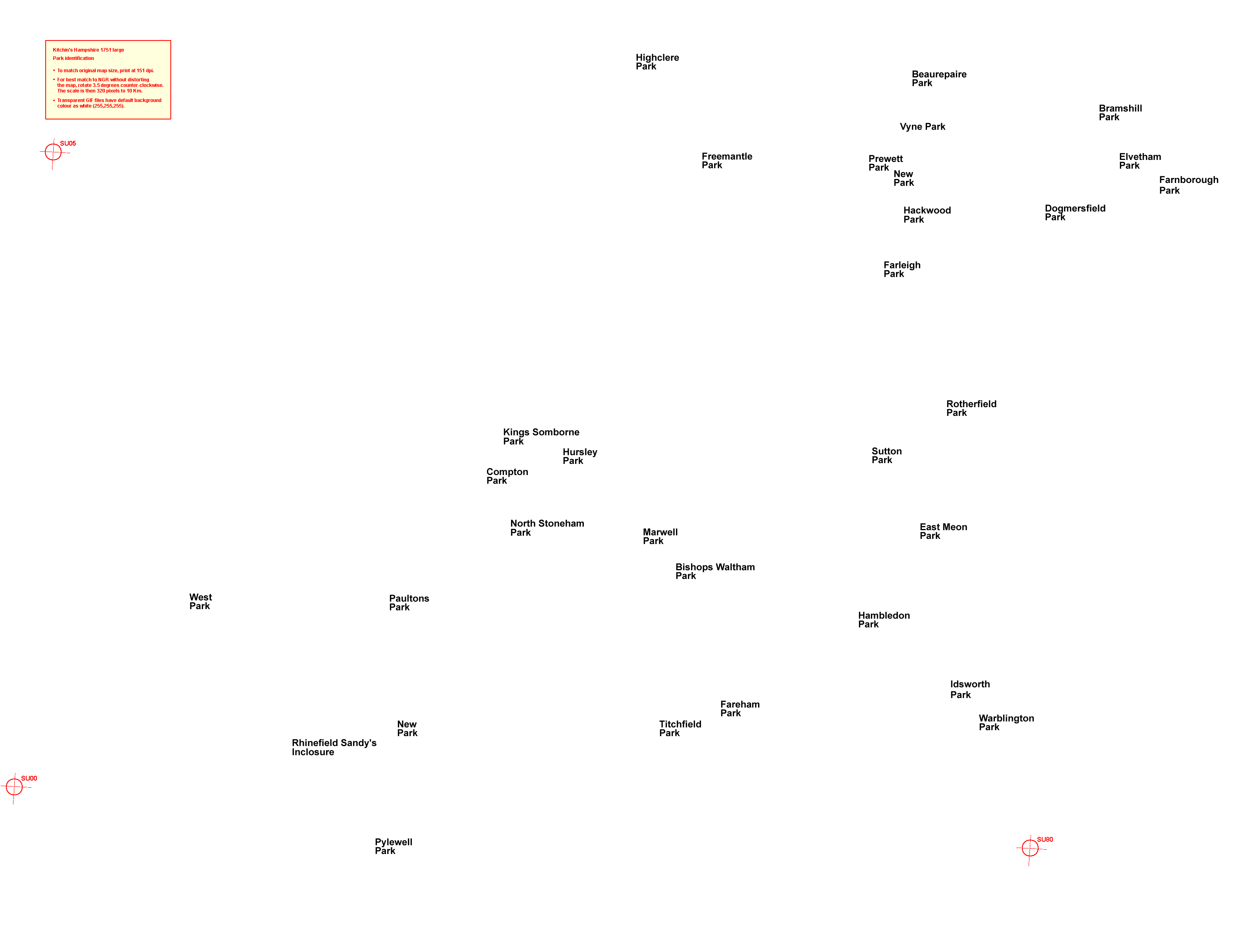 Parks, and labels of accepted names. (The saveable image files are much bigger and clearer than shown here.) ![]() Kit2PrkE.gif ![]() Kit2PrkA.gif Right click the image: "save image/picture" will save the large version. Registration marks at:- SU00, SU05, SU80 Part width SU00-SU80 = 430 mm Part height SU00-SU05 = 269 mm Grid 3.5 degrees clockwise. |