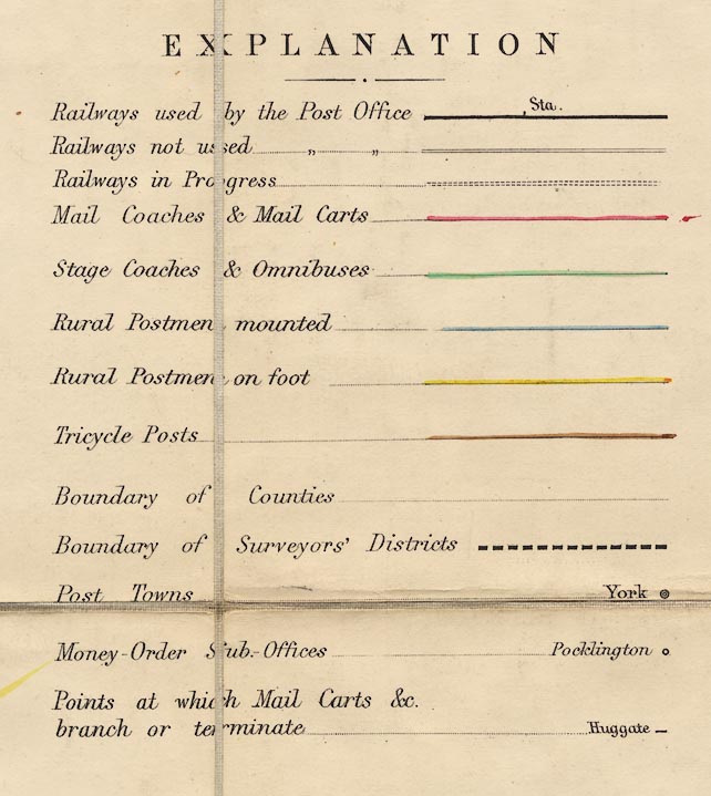 Points at which Mail Carts &c. branch or terminate [name, backsloped italic lowercse,
