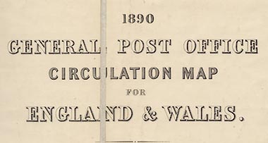 1890 GENERAL POST OFFICE CIRCULATION MAP FOR ENGLAND