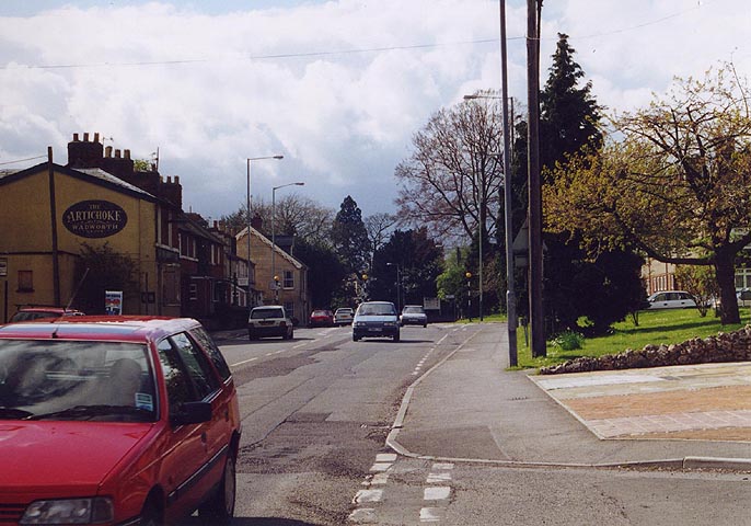 View out of Devizes from Devizes Town Bridge; the Artichoke pub was