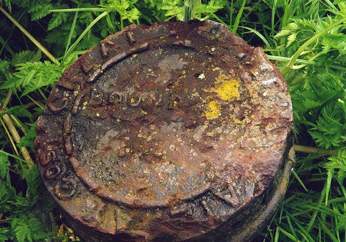 Great Western Railway, GWR, boundary marker in the rough ground north of Woodborough Fields Bridge.