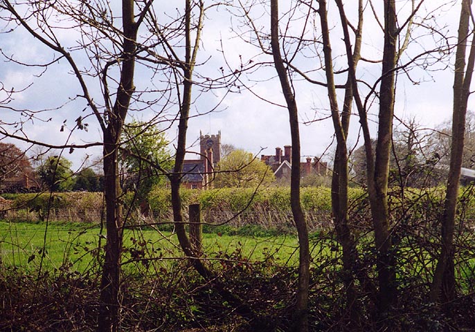 The further part of Wilcot village, and the Church of the Holy Cross, south of the canal. -- SU13906124 (S)