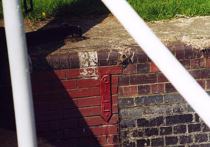 Sign showing how far the cill extends into the lock chamber at lock 56.