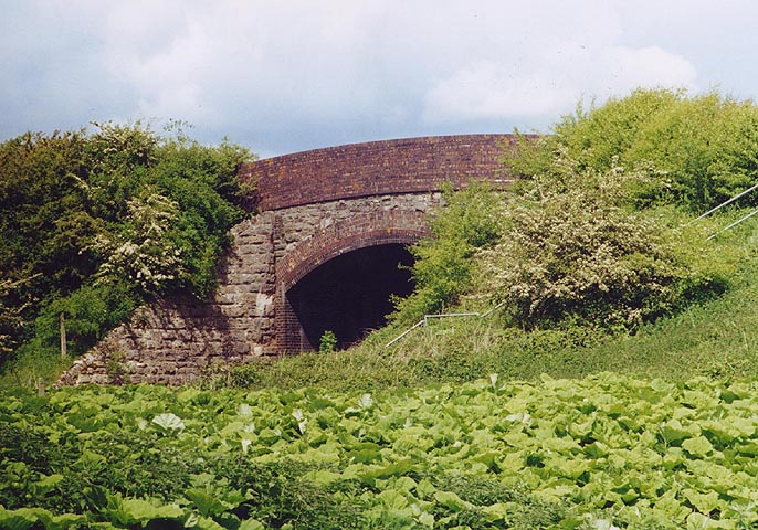 Railway bridge to the north of Froxfield Bridge, mixed stone and brick.