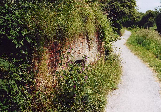 There is a pillbox growing grass by the towpath. -- ST82705973
