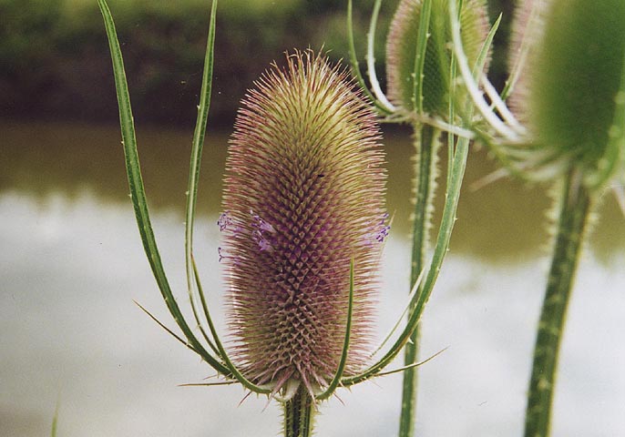 Common or fuller's teasel, Dipsacum fullonum; the flowers nearly all