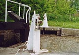 Stop planks at Cadley lock; notice the chamfered ends, and the iron