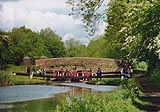 A boat approaching Crofton Top Lock from the west; the pretty effect