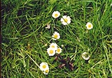 Daisies, Bellis perennis, welcoming the sun after some showers.