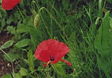 Poppy, Papaver rhoeas, on towpath.