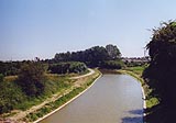 From this embanked part of the canal you can see the chimney of the