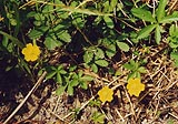 Common mallow, Malva sylvestris, growing against the pillbox.