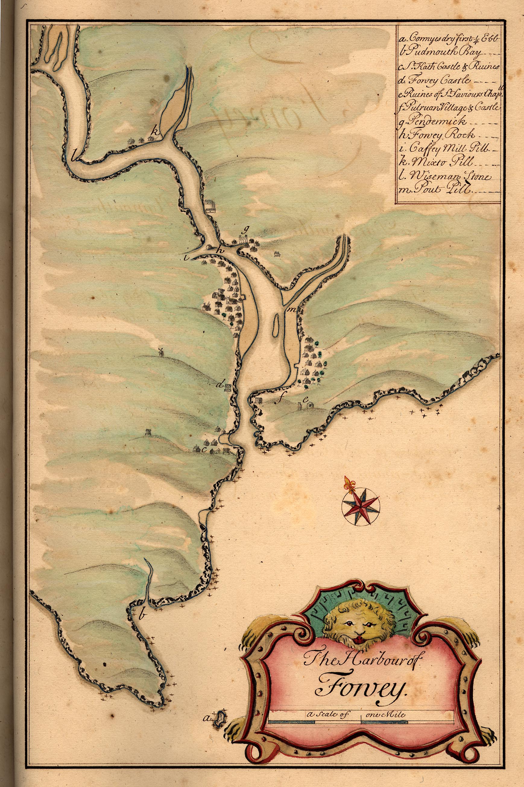 Chart, hand coloured manuscript, The Harbour of Fowey, Cornwall, by Edmund Dummer and Captain Thomas Wiltshaw, Royal Navy, 1698.