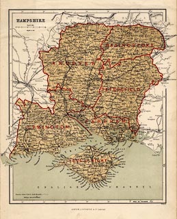 Map, chromolithograph, Hampshire with the Isle of Wight, scale about 5.5