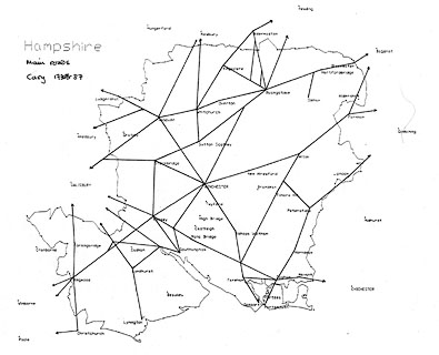 The map studied here is an edition of the 1787 map, published by John Cary in 1793. It is in the Map Collection of Hampshire CC Museums Service, item HMCMS:FA1998.214 (Please note that the map features and roads refer to this map, which is not illustrated.)