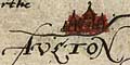 weathercock on a mast on a tower, Southampton is drawn bigger;